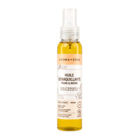 - Appliquez l’huile démaquillante sur peau sèche, sur le visage, les lèvres et les yeux en massage circulaire doux.